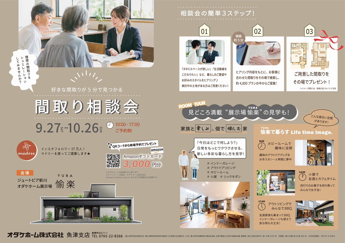 9/27(土)〜10/26(日) 『間取り相談会』in 魚津展示場 愉楽-yura-【予約制】(魚津)