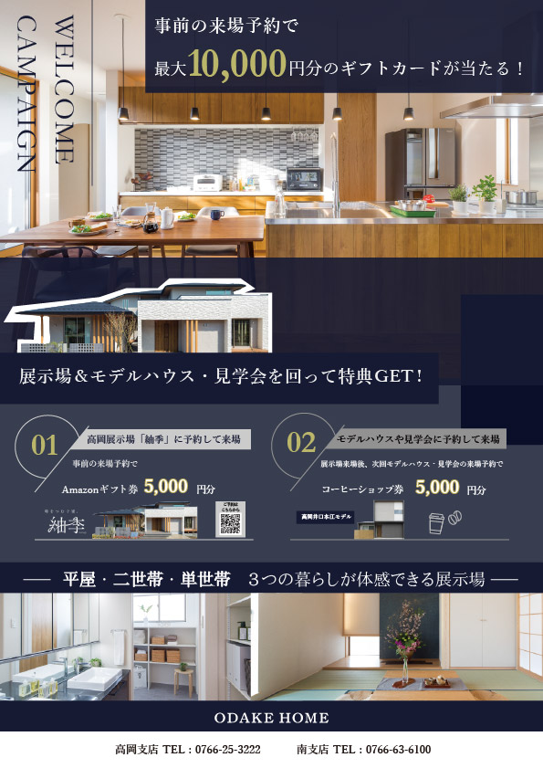 オダケホーム高岡展示場「紬季」にてご来場キャンペーンを開催!