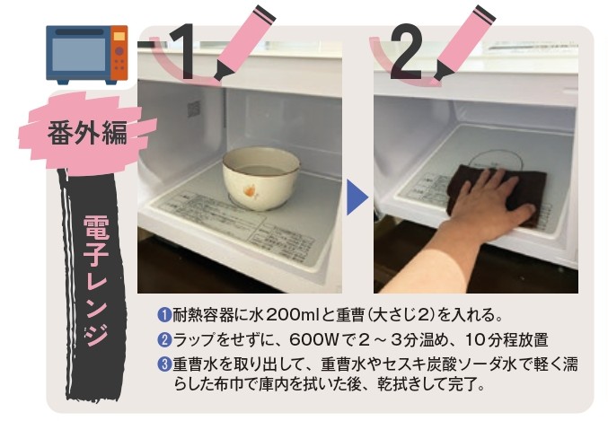 電子レンジも案外汚れているもの。この方法で掃除をすると、庫内全体の汚れを落とすことができるのでおすすめですよ!