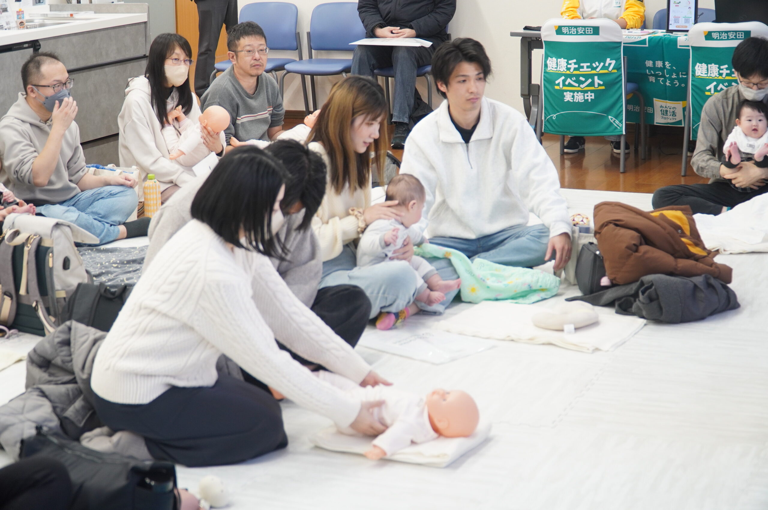 13組がご参加され、そのうちなんと4組がパパだけでのご参加!皆様、積極的に体験され、質問も多く出るなどパパが産前産後、自分の役割として子育てや、ママのサポートをしっかりされたいという想いが伝わってきました!