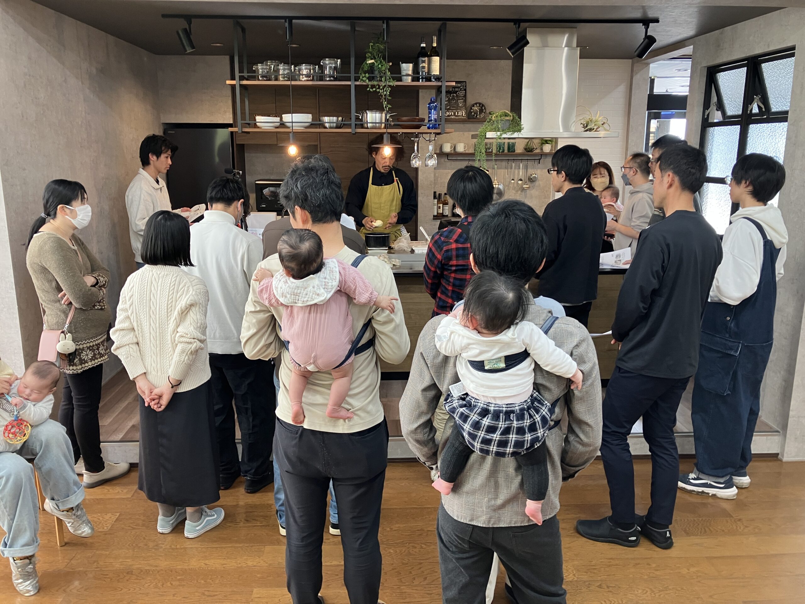 後半は、養蜂・農業・介護福祉士 であり、元飲食店経営者でもある 高橋裕次郎先生による「パパと一緒に離乳食づくり」の実演。今回は特に、「男性講師が離乳食を教える」という内容だったことから、「自分だけで参加しても大丈夫そう」と感じて申し込んだパパも多かったそうです。