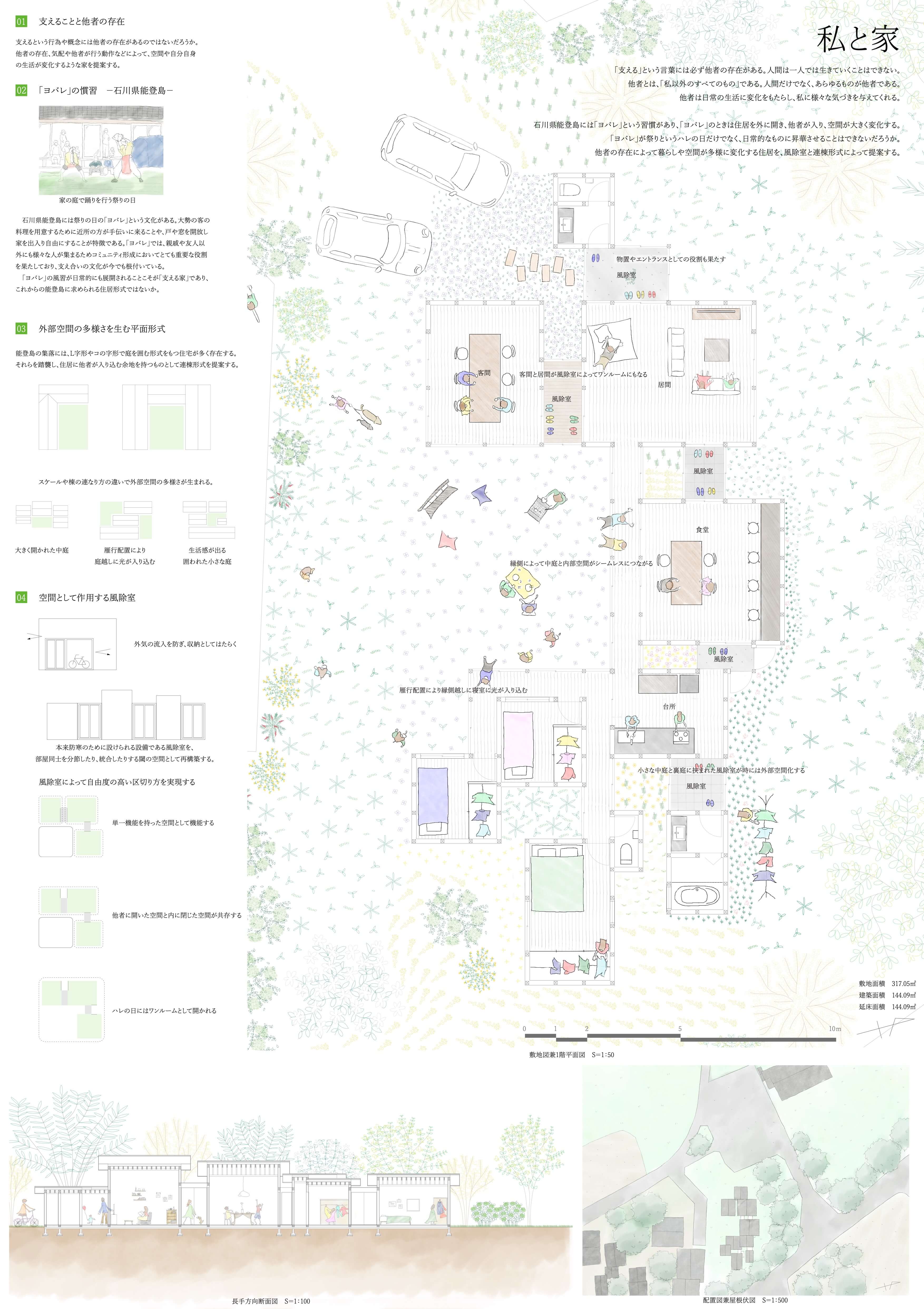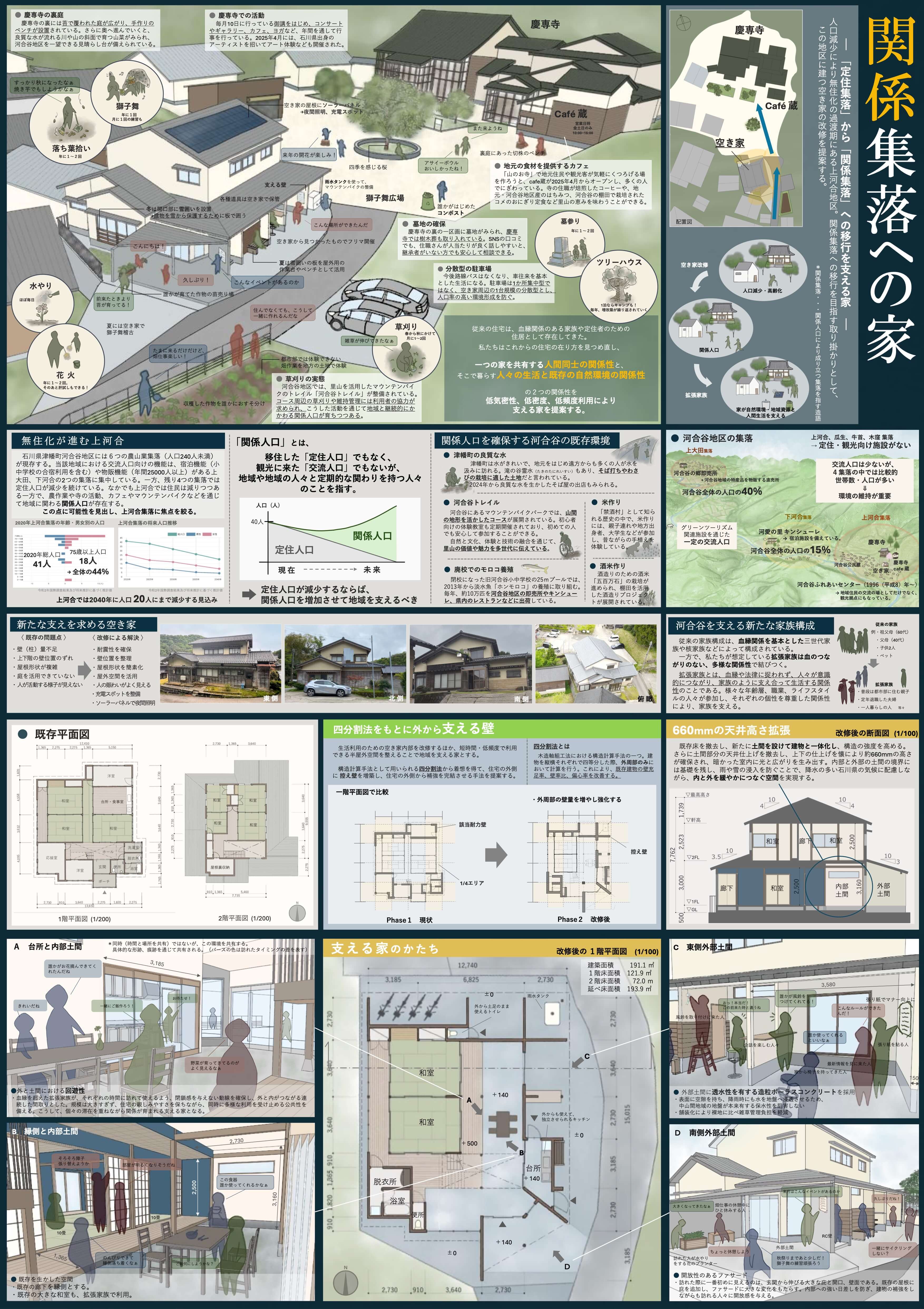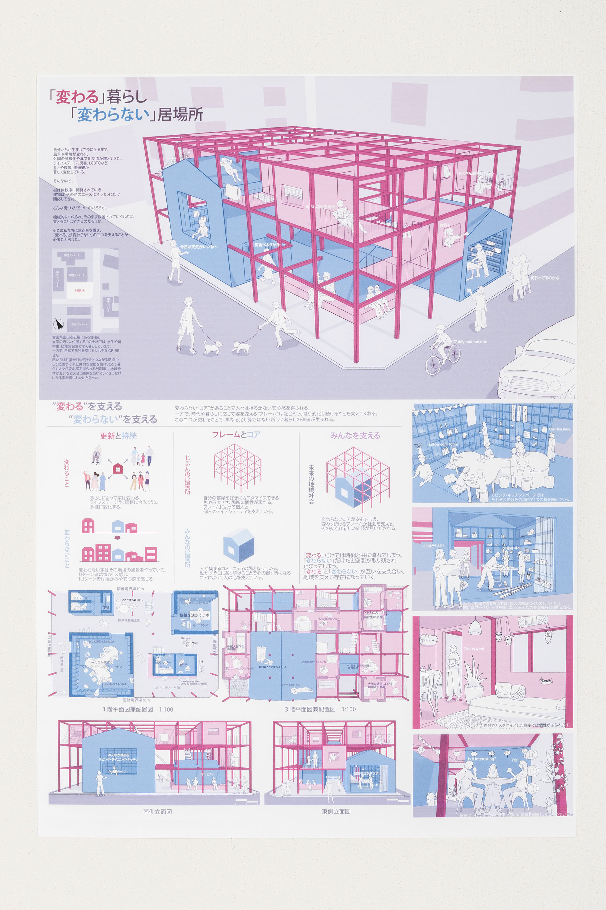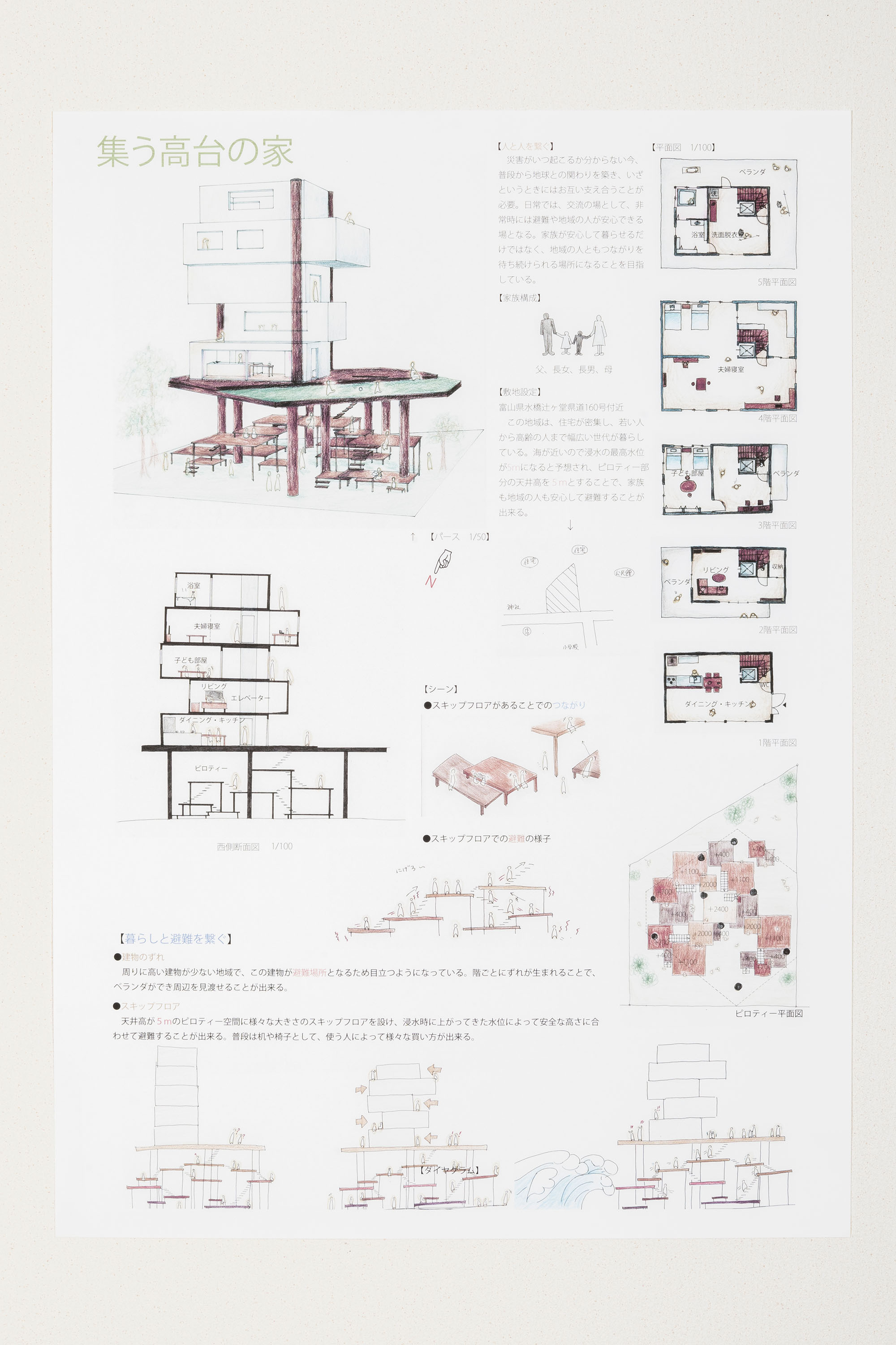 なたが広い草原にぽつりと立っているとしたら、どんな気持ちでしょう。ちょっと不安な気分になりませんか。でもそこに一本の樹が立っていたとしたら、樹は心地よい木陰をつくり、草原に腰を下ろすきっかけをつくってくれるでしょう。そんな時、樹は、私たちに居場所と安心を与えてくれる頼りがいのある存在として感じられるはずです。 では、私たちにとって家とはどんな存在でしょう。日差しや雨、風、暑さや寒さなどの自然がもたらす影響から私たちを守ってく れるもの。安心できる居場所。人生の記憶を刻み込む場所。名前や顔と同じように、私たちそれぞれの固有性を保証してくれるもの。家族や地域、社会と私たちをつないでくれるもの、などなど。家には様々な役割があります。 それらを合わせて考えてみると、家は私たちを様々なかたちで支えてくれる存在と言っても良いのではないでしょうか。屋根や床、壁が、私たちの生活や身体を物理的に支えてくれることもあれば、家という存在が、地域や社会の中に生きる私たちの存在を支えてくれることもあるでしょう。家での経験や記憶は、私たちの自己形成を大きく支 えてくれているはずです。 今年のテーマは「支える家」です。皆さんは家に何を支えてもらっているでしょうか。あるいは、家に何を支えてもらいたいでしょう。物理的なことでしょうか、それとも精神的なことでしょうか。支えられるだけでなく、私たちが家や家族、地域や社会を支えることを考えても良いでしょう。支える対象が地球環境にまで広がるかも知れません。どんな「支え」や「支え方」があるか、様々に想像を膨らませてみてください。 「支える」というキーワードを通して「家って何だろう?」ということを改めて考え、家の存在や意味に対する 新しい気づきが生まれることを期待しています。 上記のテーマに加えて、以下の3点にも配慮した提案としてください。
