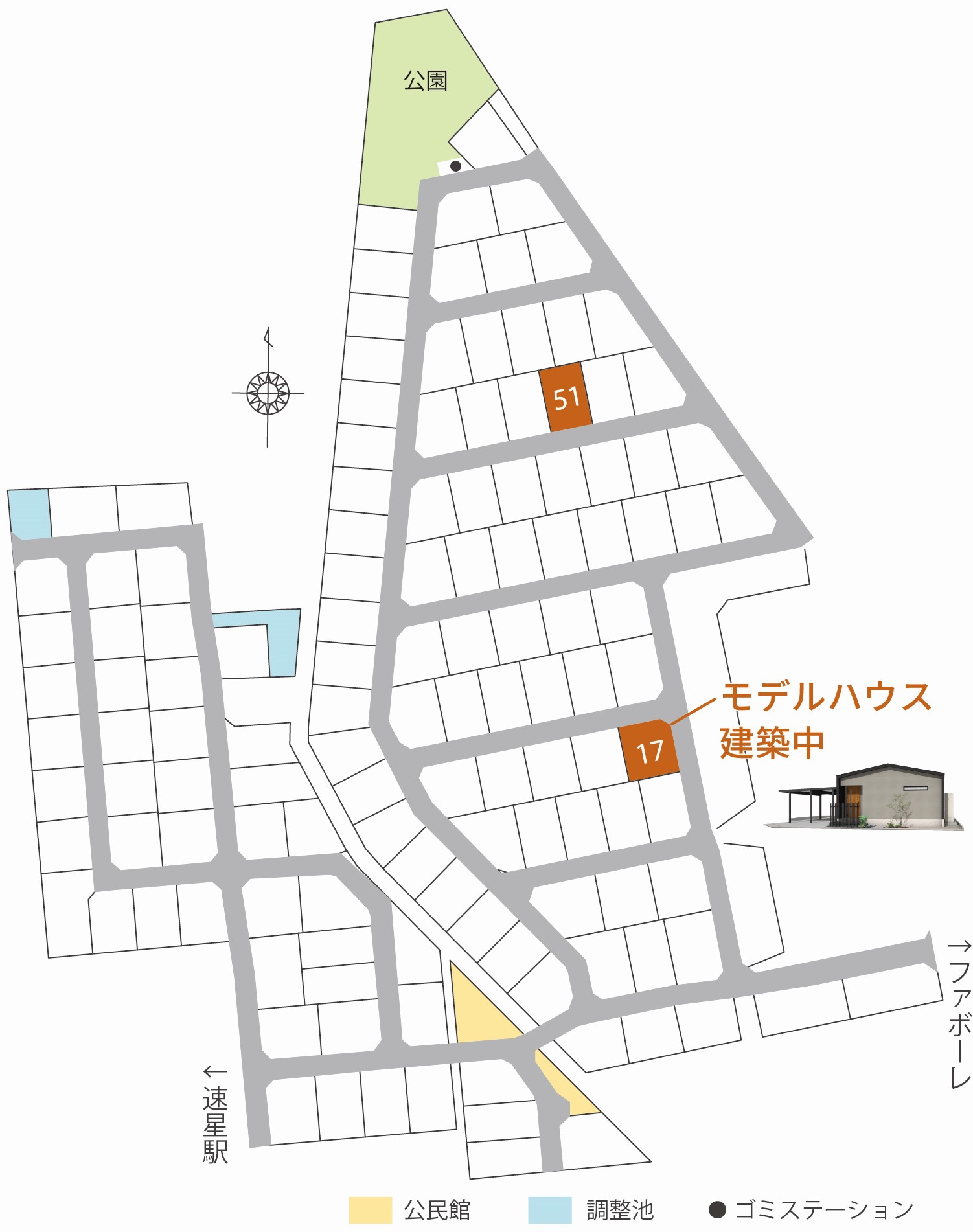| 備考 | ・市街化調整区域 ・開発許可番号/富山県指令建第300号(R6開発005) ・開発面積/39,215.13㎡(内持分面積413.05㎡) ・総区画数/129区画(ウエストヒルズ速星) ・販売区画/1区画 ・造成工事完了:2025年10月 ※№17は、住宅展への出展を条件に販売いたします。 ※住宅着工可能時期:№51 住宅展終了後(2026年4月以降予定) ※確定測量後、面積・価格に増減がある場合がございます。 ・都市計画法:景観法 ※富山市景観街づくり条例 有 ・建物の高さの制限:道路斜線制限 有、隣地斜線制限 有 ・その他の制限:速星駅周辺地区 地区計画 有 ・建築条件付区画/この土地は、土地売買契約後3ヶ月以内に、売主と住宅の建築請負契約を締結することを条件に販売します。この期間内に建築請負契約を締結されなかった場合は、土地売買契約は白紙となり、受領した手付金等の代金は全てお返しします。 |
