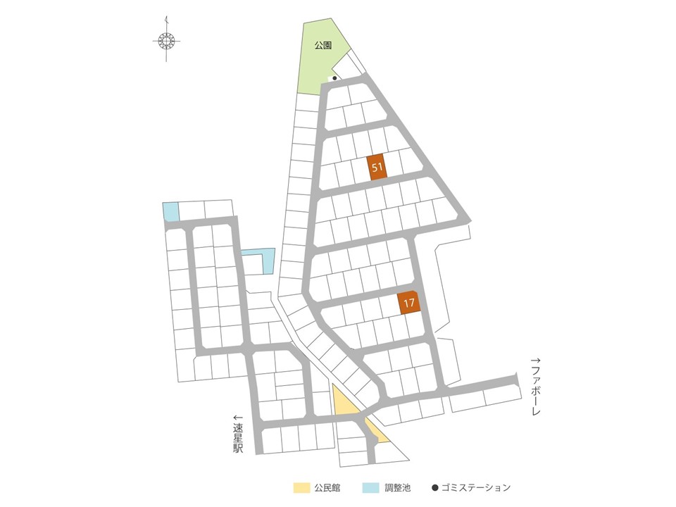 | 備考 | ・市街化調整区域 ・開発許可番号/富山県指令建第300号(R6開発005) ・開発面積/39,215.13㎡(内持分面積413.05㎡) ・総区画数/129区画(ウエストヒルズ速星) ・販売区画/2区画 ・造成工事完了:2025年10月(予定) ※№17は、住宅展への出展を条件に販売いたします。 ※住宅着工可能時期:№17 造成完了後(2025年10月以降予定)、№51 住宅展終了後(2026年4月以降予定) ※確定測量後、面積・価格に増減がある場合がございます。 ・都市計画法:景観法 ※富山市景観街づくり条例 有 ・建物の高さの制限:道路斜線制限 有、隣地斜線制限 有 ・その他の制限:速星駅周辺地区 地区計画 有 ・建築条件付区画/この土地は、土地売買契約後3ヶ月以内に、売主と住宅の建築請負契約を締結することを条件に販売します。この期間内に建築請負契約を締結されなかった場合は、土地売買契約は白紙となり、受領した手付金等の代金は全てお返しします。 | ||