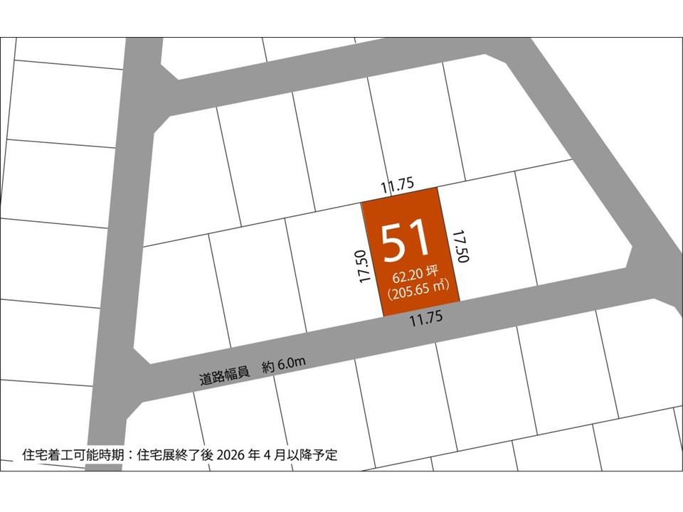 | 道路 | 幅員:№.17:北側・東側公道6m(舗装道路)、№.51:南側 公道6m(舗装道路) | 建築条件 | あり |