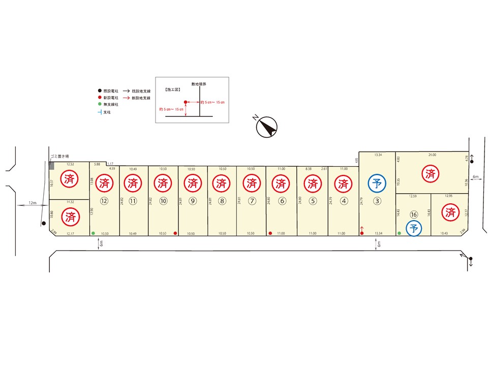 | 備考 | 工事完了:2024年10月末(11.12.13.14区画は12月末) 開発面積:3974.01㎡ ・自治会等会費あり ・景観法 ・建物の高さの制限あり ・建築条件付区画/この土地は、土地売買契約後3ヶ月以内に、売主と住宅の建築請負契約を締結することを条件に販売します。この期間内に建築請負契約を締結されなかった場合は、土地売買契約は白紙となり、受領した手付金等の代金は全てお返しします。 ※確定測量済 |