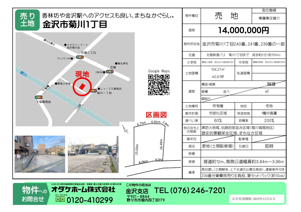 | 所在地 | 金沢市菊川1丁目240番、241番、239番の一部 | ||