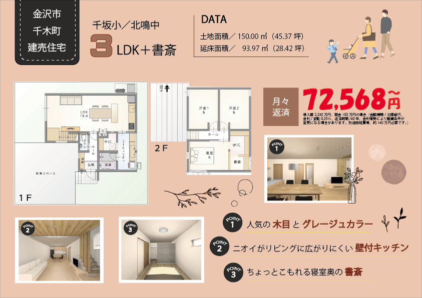 土地+建物販売価格(建物消費税10%、負担金含む)