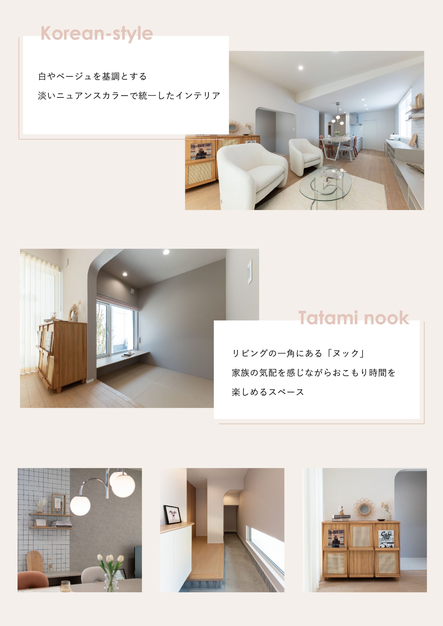 ウォークヒルズきちじまに新しいモデルハウスが誕生!目を引く存在感のある外観!内装は淡いカラーを使った、韓国カフェ風の柔らかいインテリアに。LDK空間の繋がりと、広く見えるよう設計されたこだわりの間取りが見どころです!ぜひ現地でご体感ください。