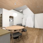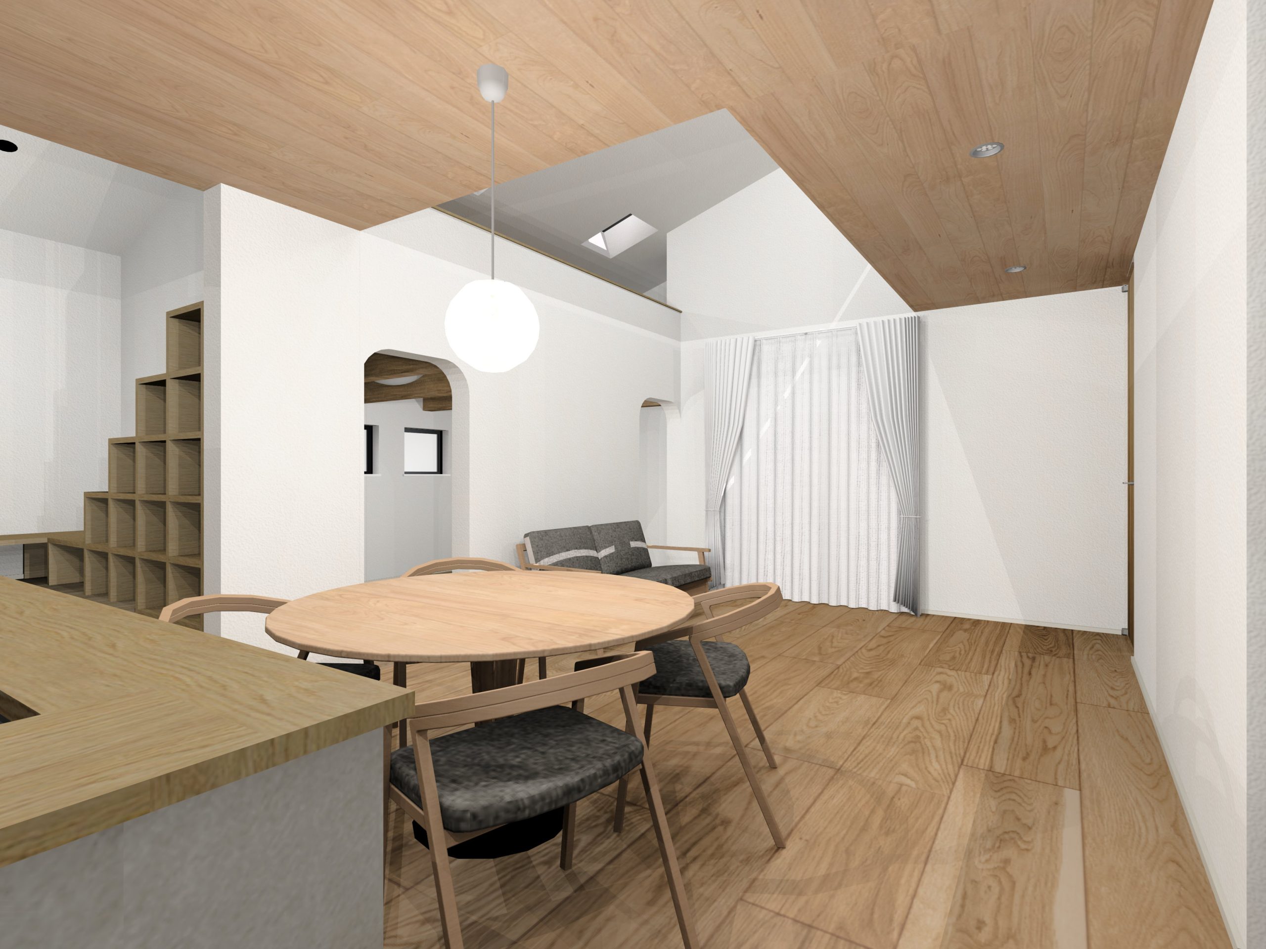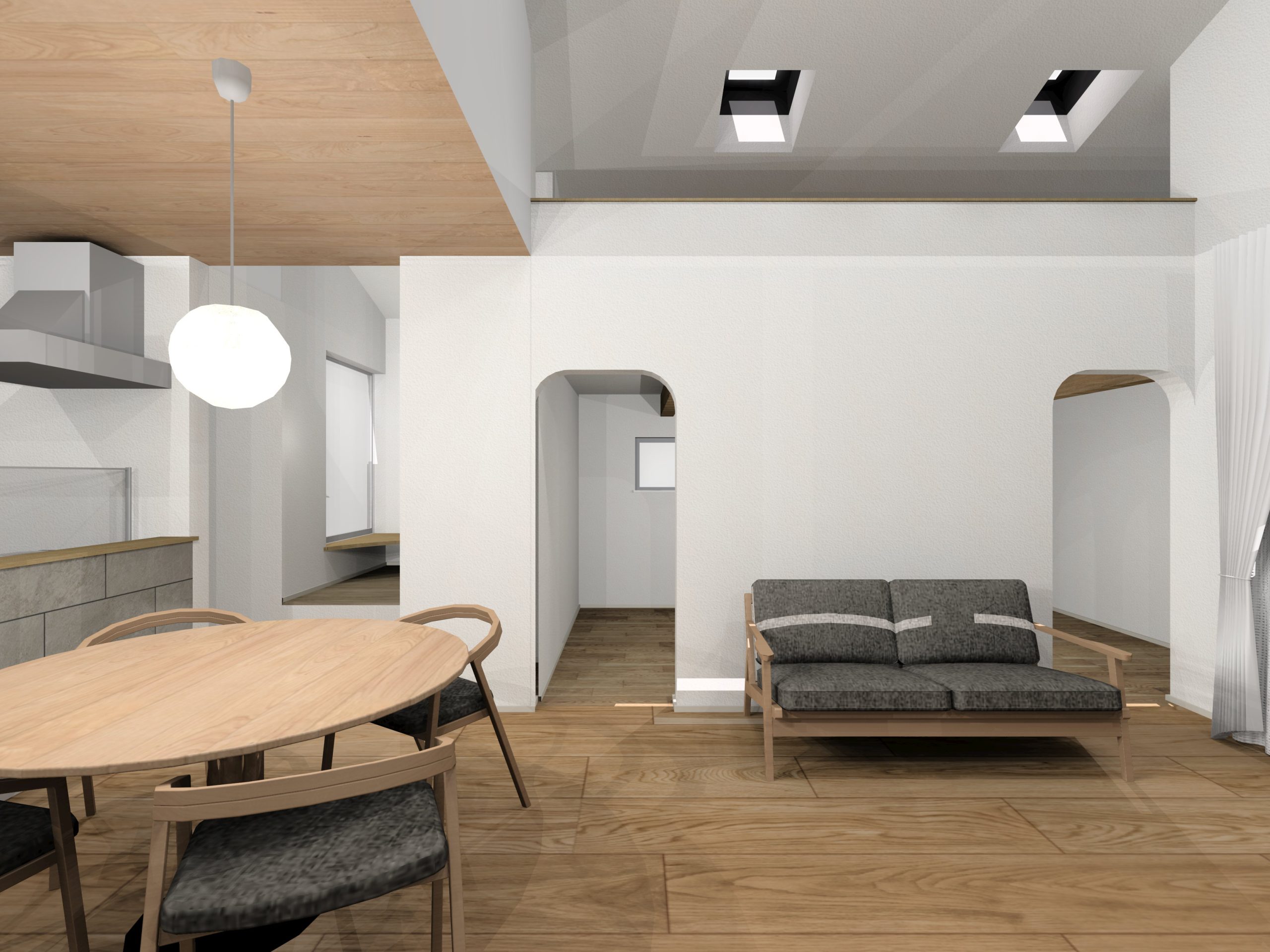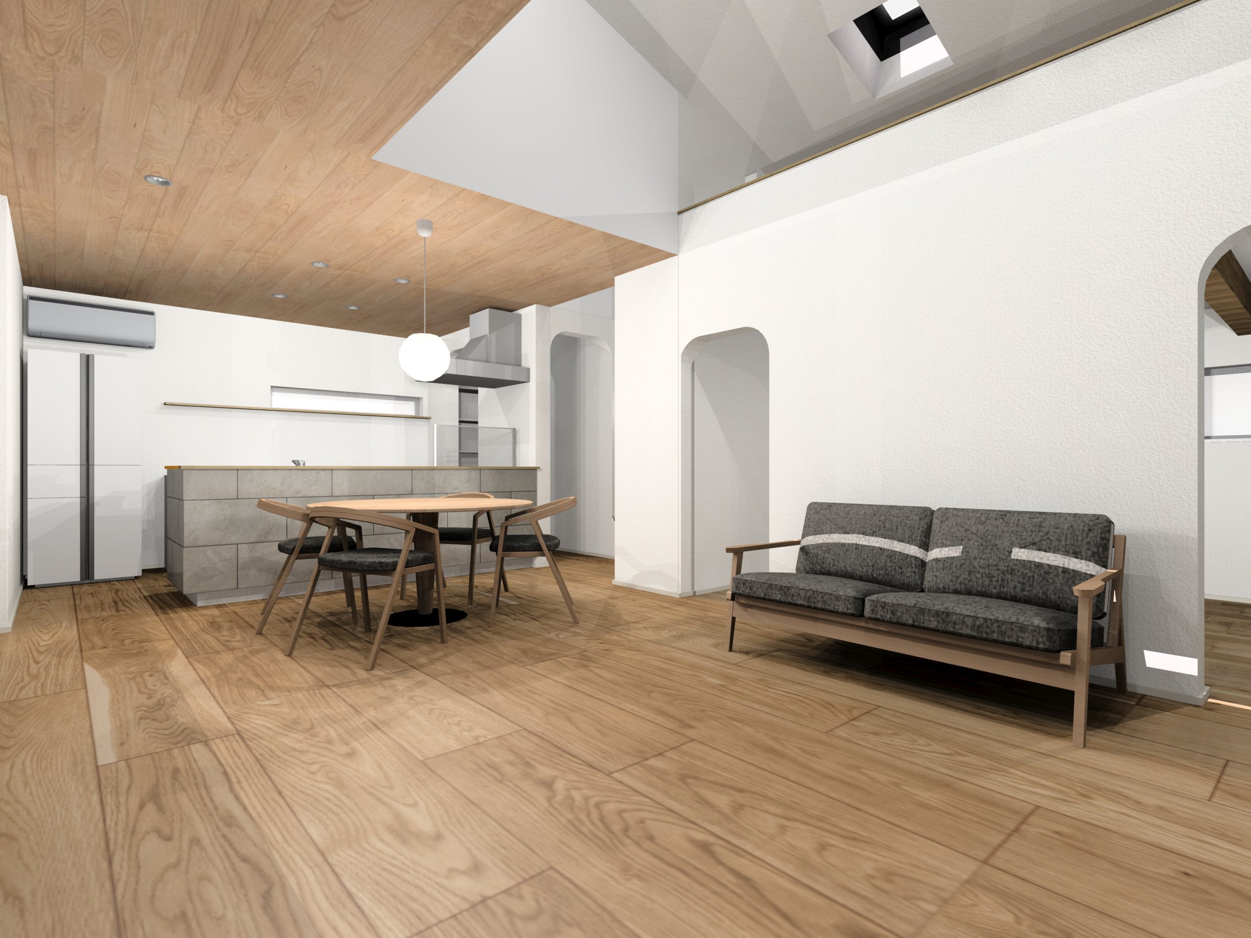 ③天窓やハイサイドライトから日差しが差し込む明るく広々したLDK。夜は星空を眺めることも。