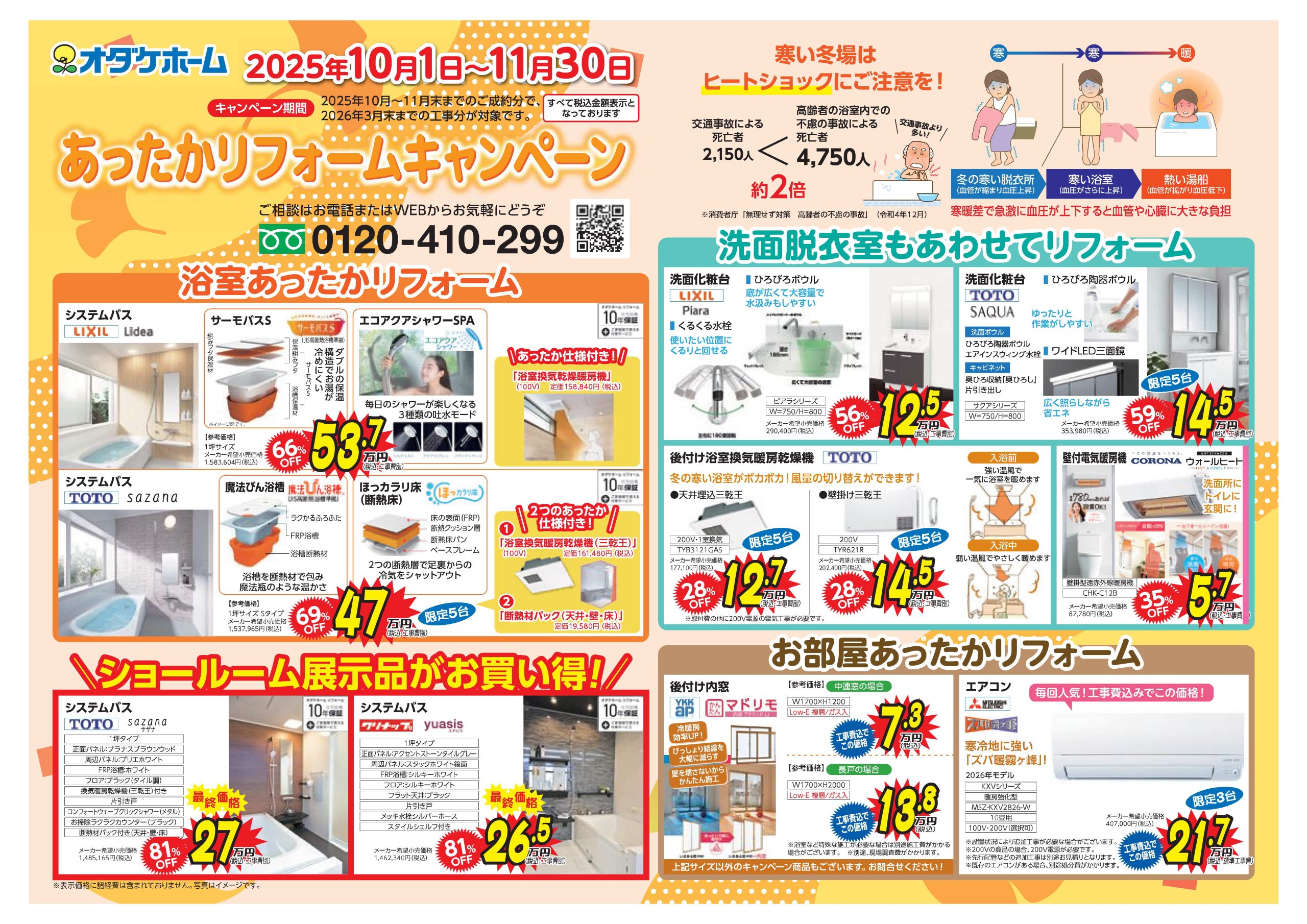 今回のリフォームキャンペーンは、水まわりを中心とした人気のあったかリフォーム商品をズラリと取り揃えました!