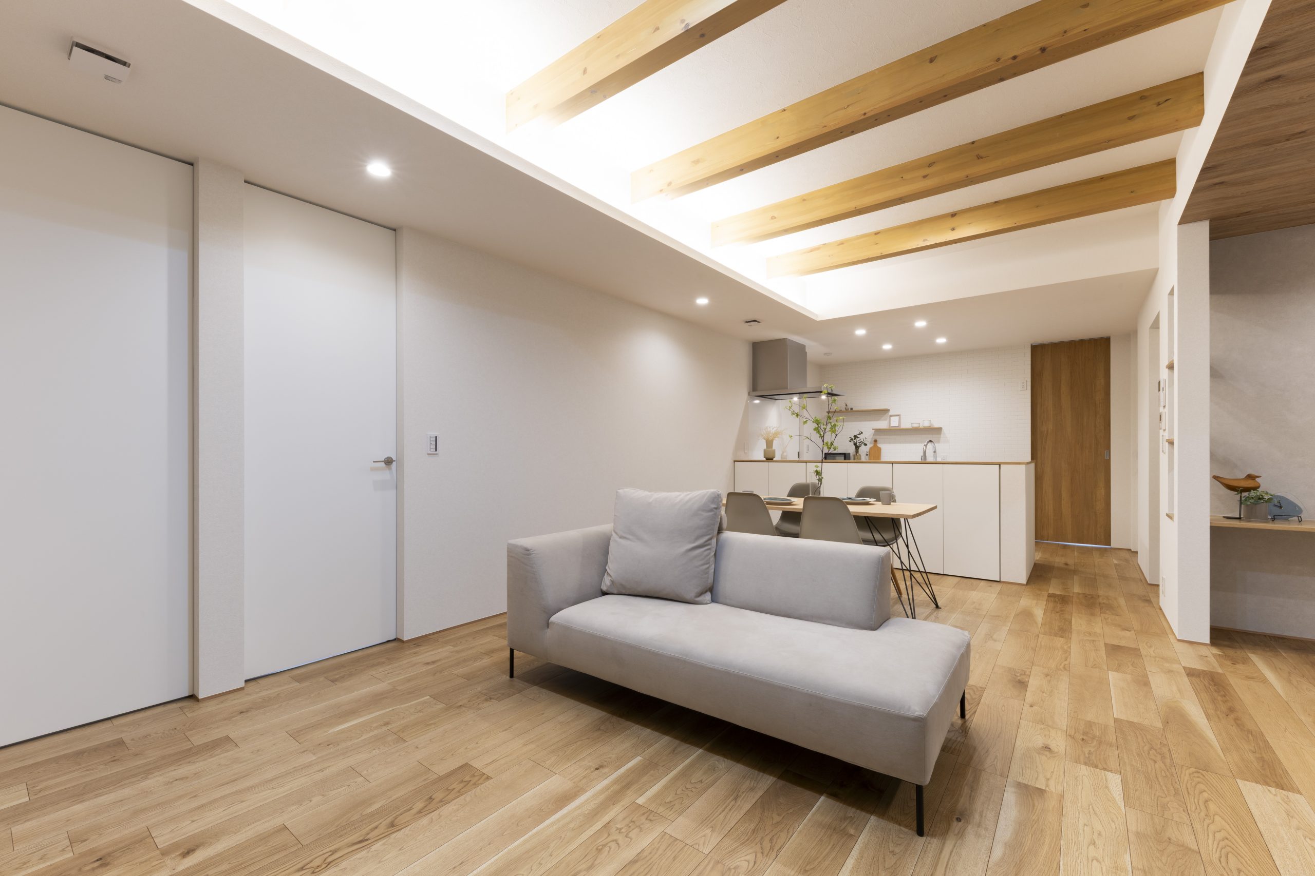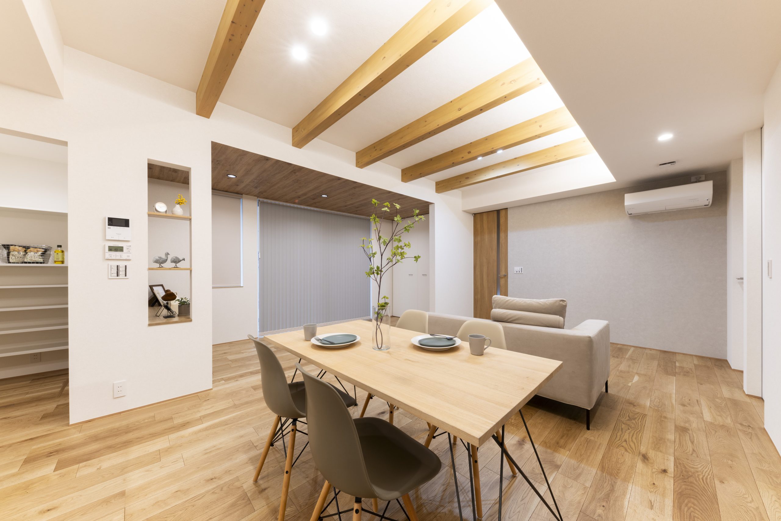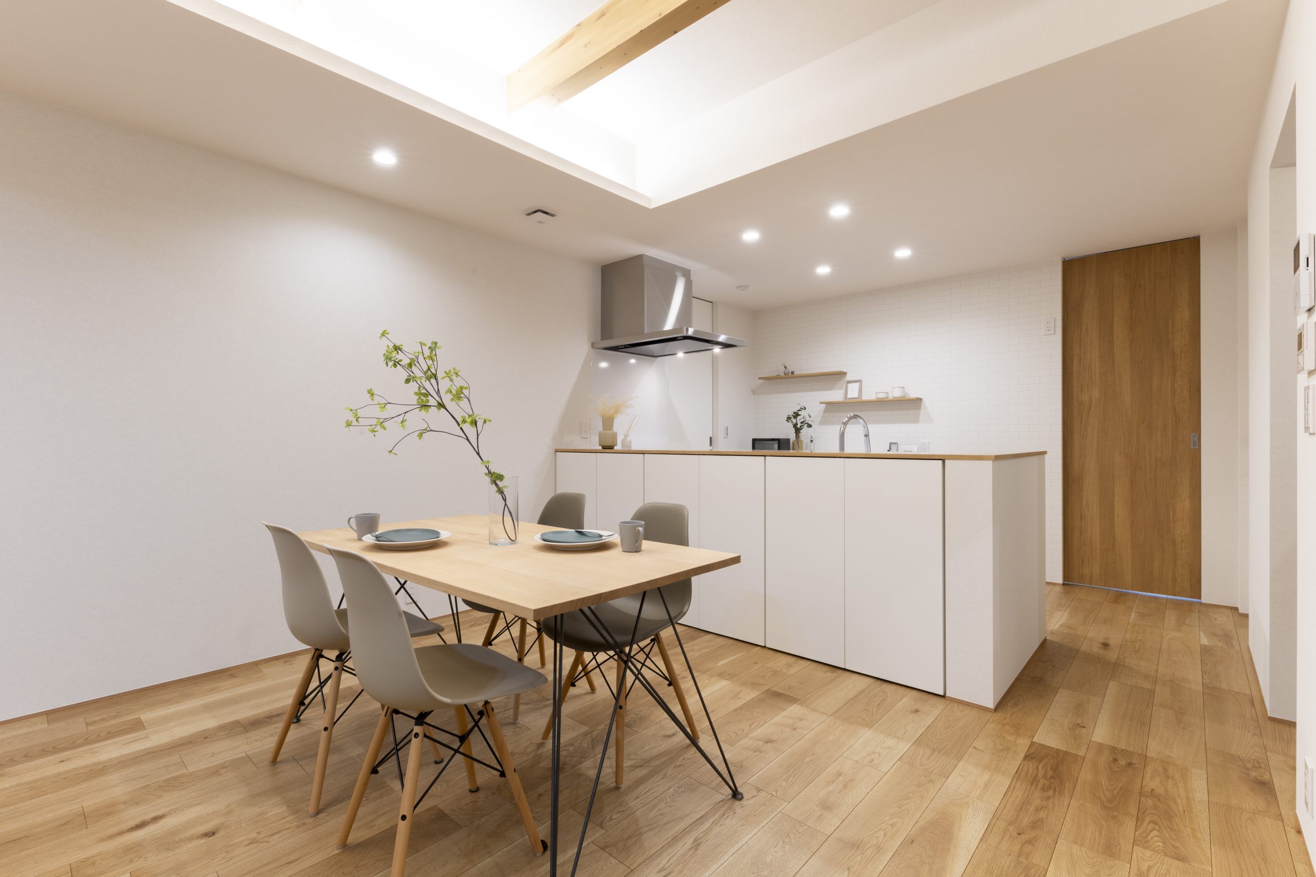 実例351 和と北欧の平屋 敷地面積 395.42㎡ 延床面積 101.43㎡ こだわりポイント 平屋ならではの1階だけで生活動線がまとまる、将来も安心快適 Nordic×japaneseテイストのインテリアは落ち着きのある上質空間 建具やキッチンの前面収納の扉などもホワイトで統一。空間に余白のあるスッキリとしたデザインが魅力 オダケホームの強さのひみつ 私たちの家づくり こだわりのモデルハウス