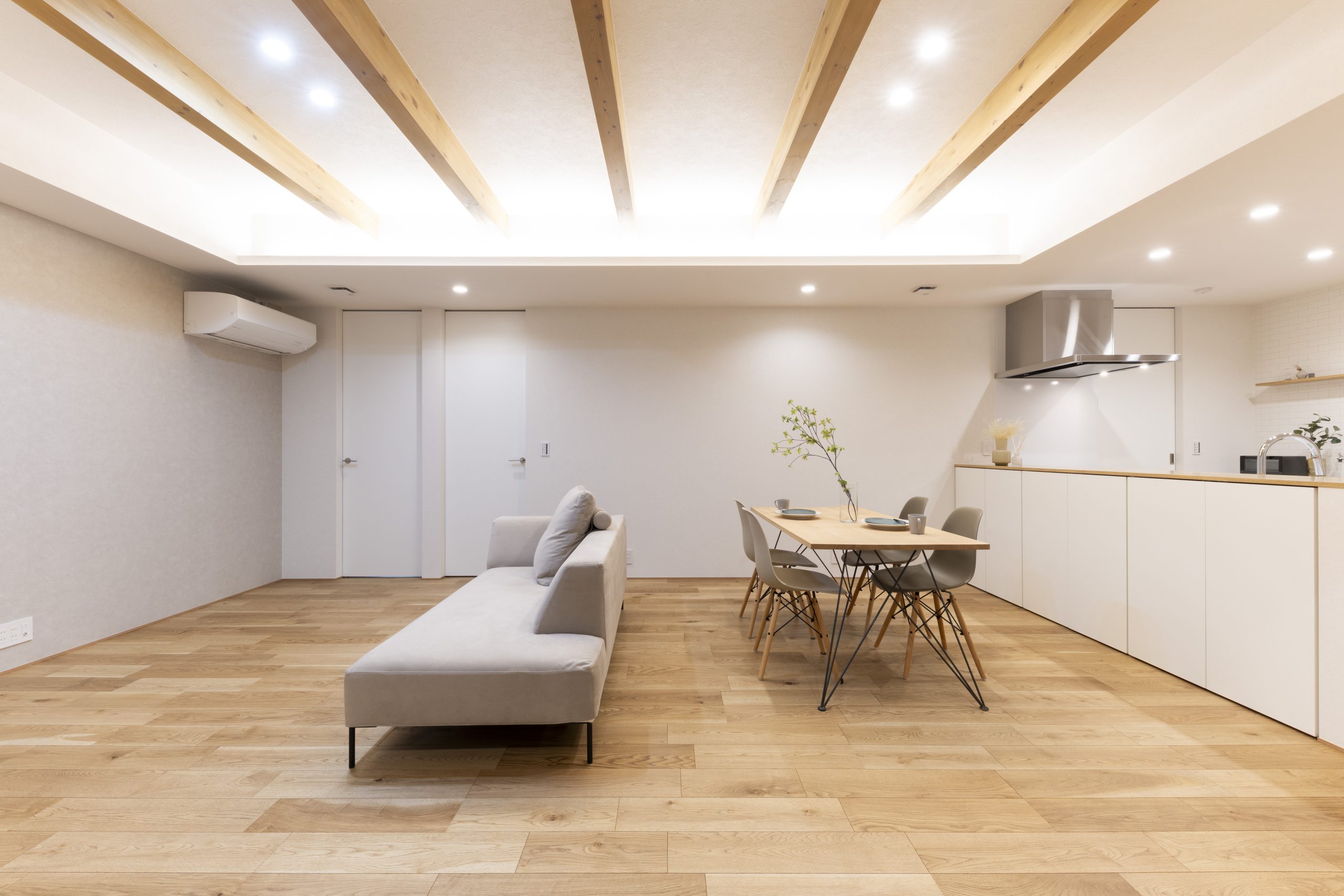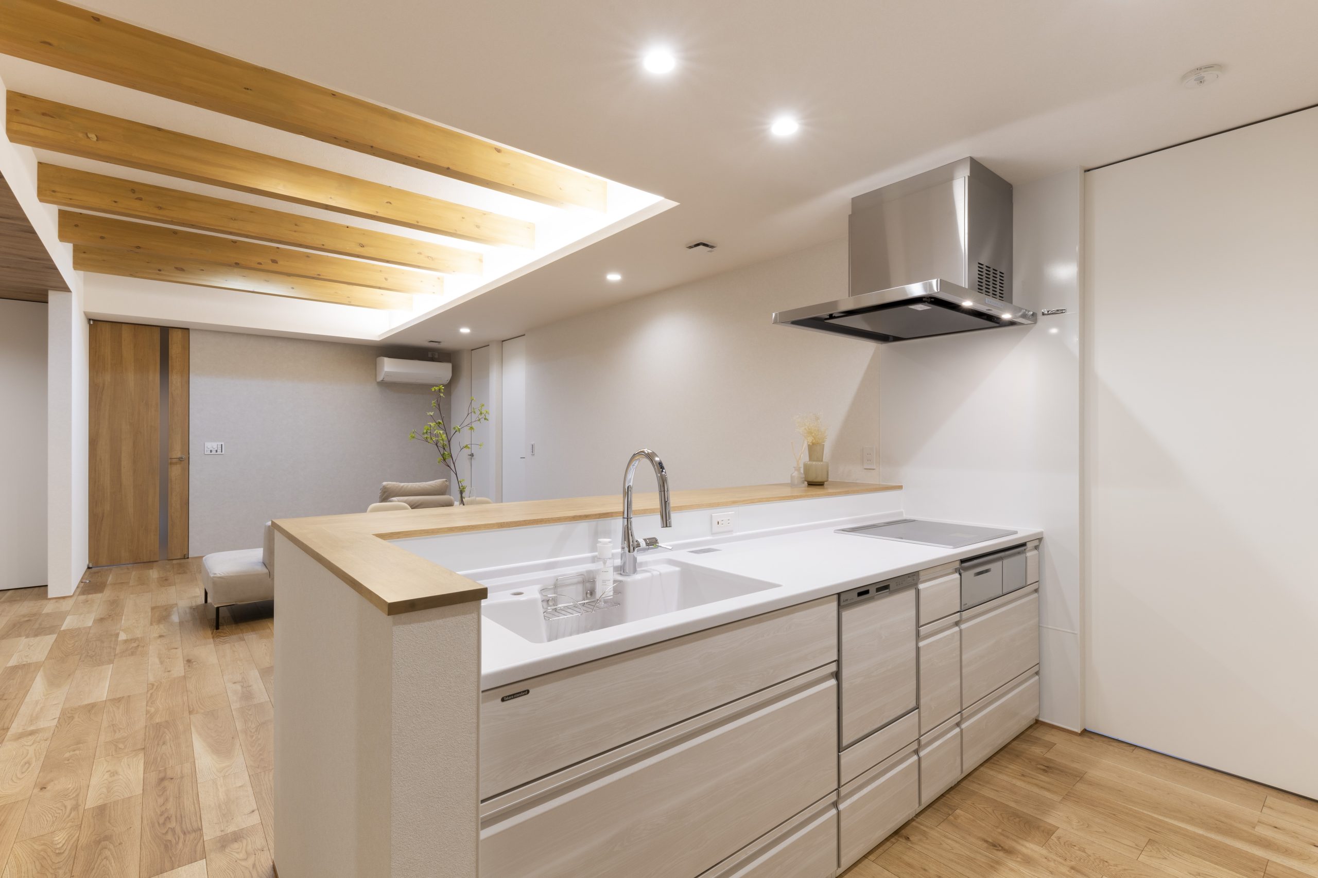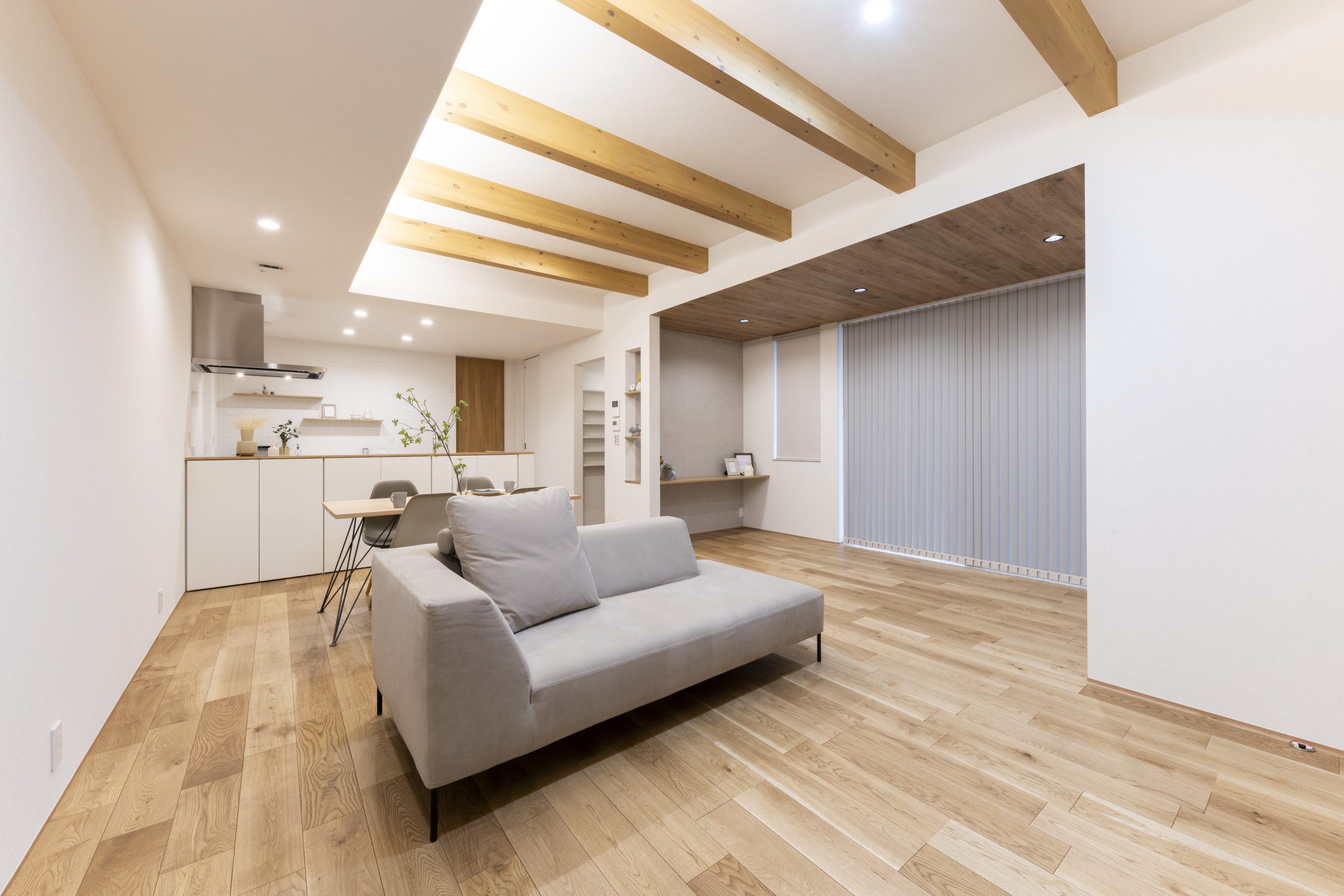 実例351 和と北欧の平屋 敷地面積 395.42㎡ 延床面積 101.43㎡ こだわりポイント 平屋ならではの1階だけで生活動線がまとまる、将来も安心快適 Nordic×japaneseテイストのインテリアは落ち着きのある上質空間 建具やキッチンの前面収納の扉などもホワイトで統一。空間に余白のあるスッキリとしたデザインが魅力 オダケホームの強さのひみつ 私たちの家づくり こだわりのモデルハウス